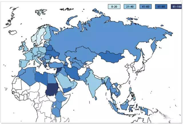 ? 1、一帶一路沿線國家整體運(yùn)營風(fēng)險(xiǎn)分布