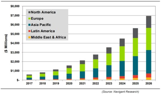 ? Navigant預測,到2026年歐洲將擁有大的智能路燈安裝基數,其次是亞太和北美。