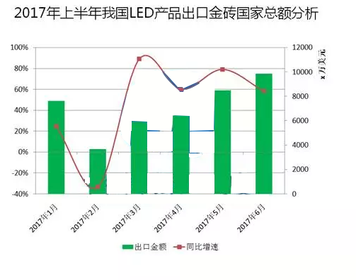 ?? 歷經(jīng)十年淬煉,金磚合作機(jī)制已經(jīng)成為新興市場國家和發(fā)展中國家合作的主要平臺。9月3日—5日,金磚國家領(lǐng)導(dǎo)人第九次會晤在中國廈門舉行,吸引全球目光。2017年上半年我國LED照明產(chǎn)品出口金磚國家的情況: