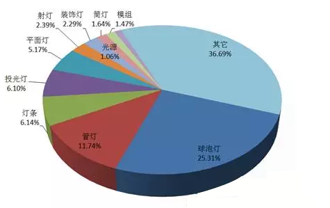 ? 2、球泡燈、管燈、燈條等仍為主要出口產(chǎn)品