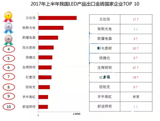 ? 上半年,我國LED產(chǎn)品出口企業(yè)達(dá)11323家,其中出口金磚國家的企業(yè)有2284家,約為總數(shù)的兩成。其中前30家企業(yè)的出口總額占整體出口金磚國家總額的41.31%,前十企業(yè)出口額占整體比例約為23.00%。